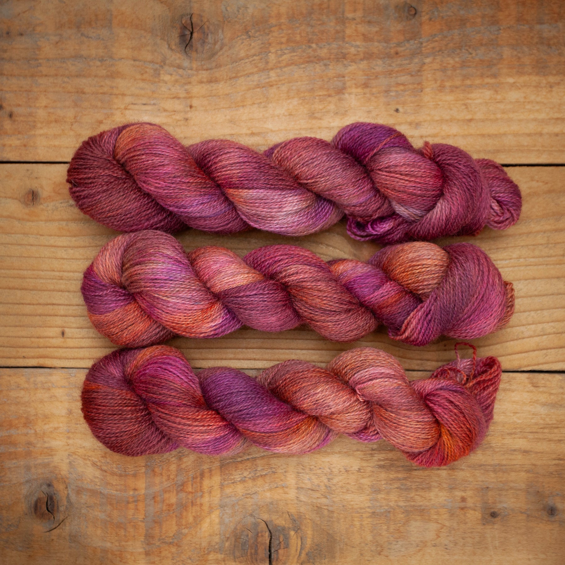 This sport weight blend of 75% Bluefaced Leicester and 25% Gotland is a versatile base with a beautiful natural character. The BFL brings strength and softness, while the Gotland adds a gentle halo and a subtle silvery undertone. When hand dyed, the grey base deepens and enriches colourways, giving them a moody, layered depth that glows in the light.