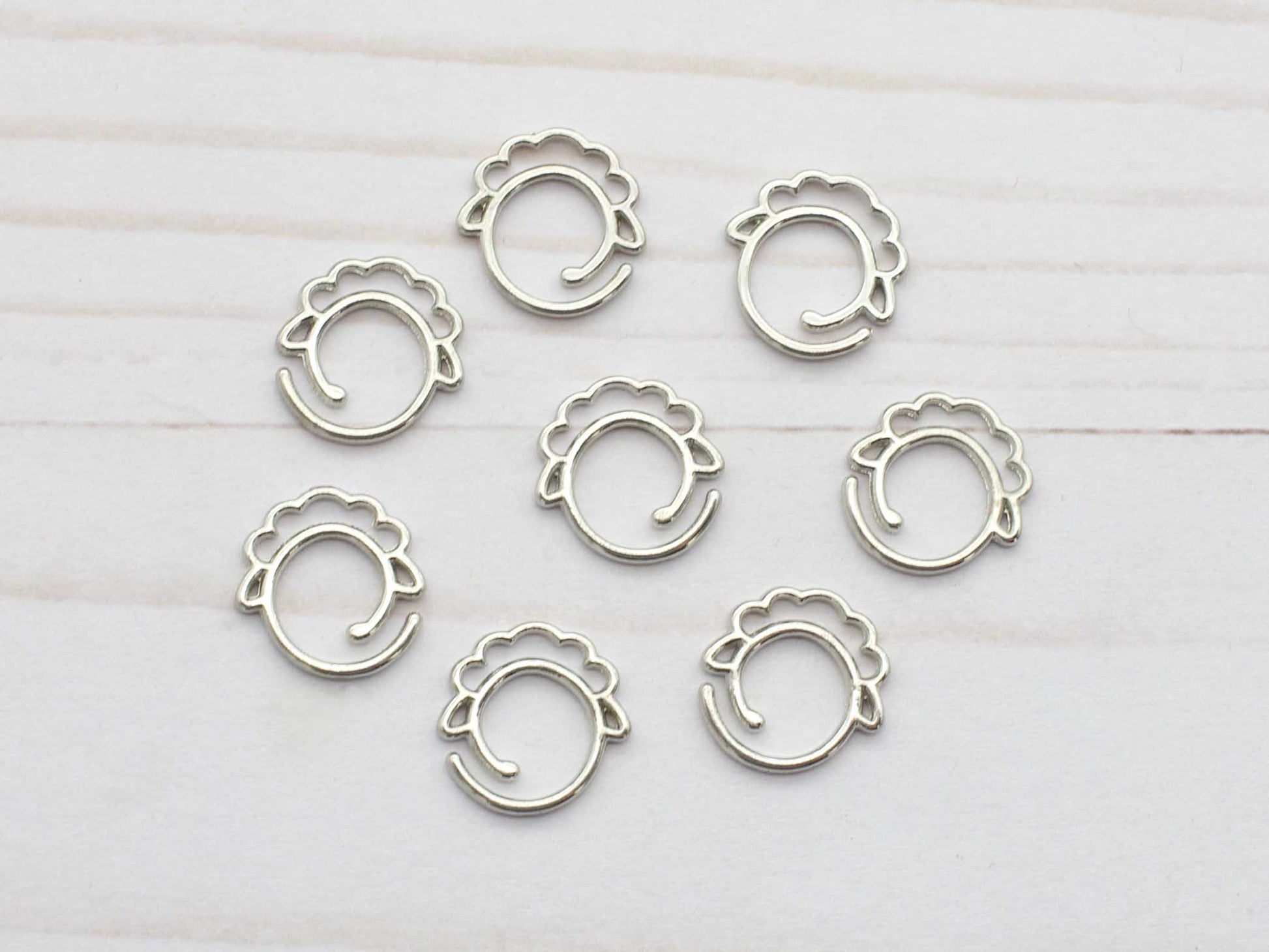 Set of 8 Fox & Pine stitch markers for knitting and crochet - Silver Sheep - Open/Split Ring (Copy)